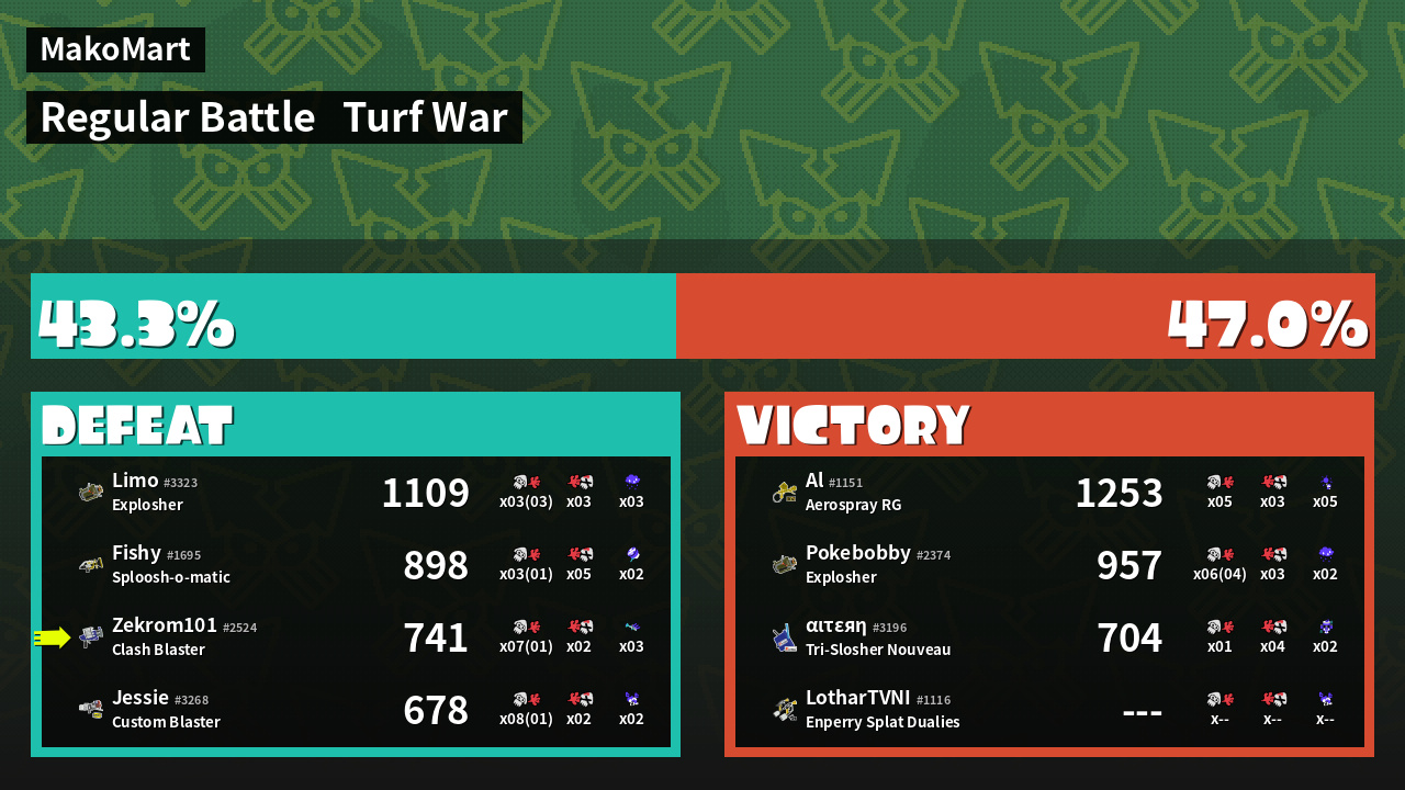| Mode | Turf War - Regular Battle | ||