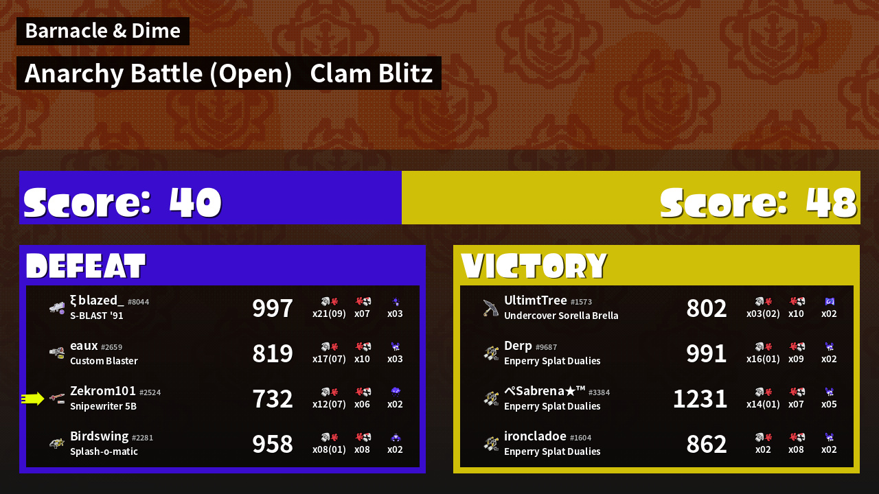 | Mode | Clam Blitz - Anarchy Battle (Open) | ||