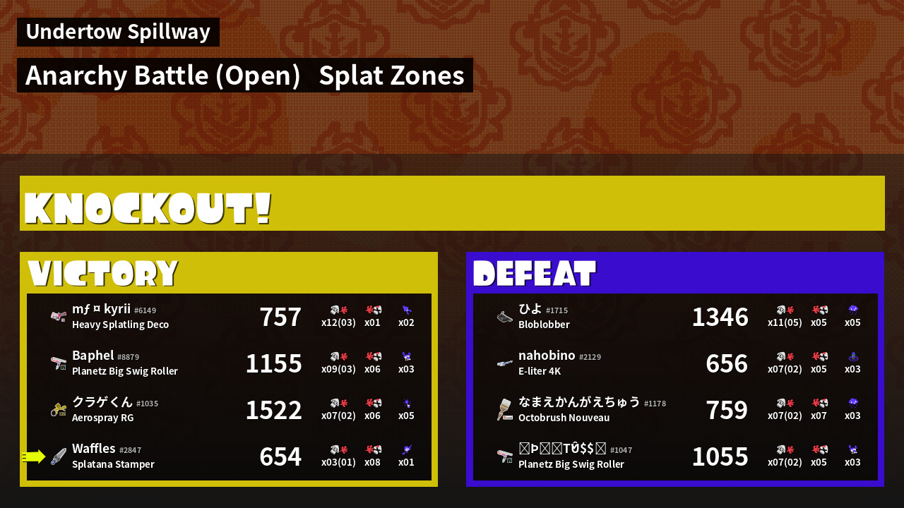 | Mode | Splat Zones - Anarchy Battle (Open) | ||