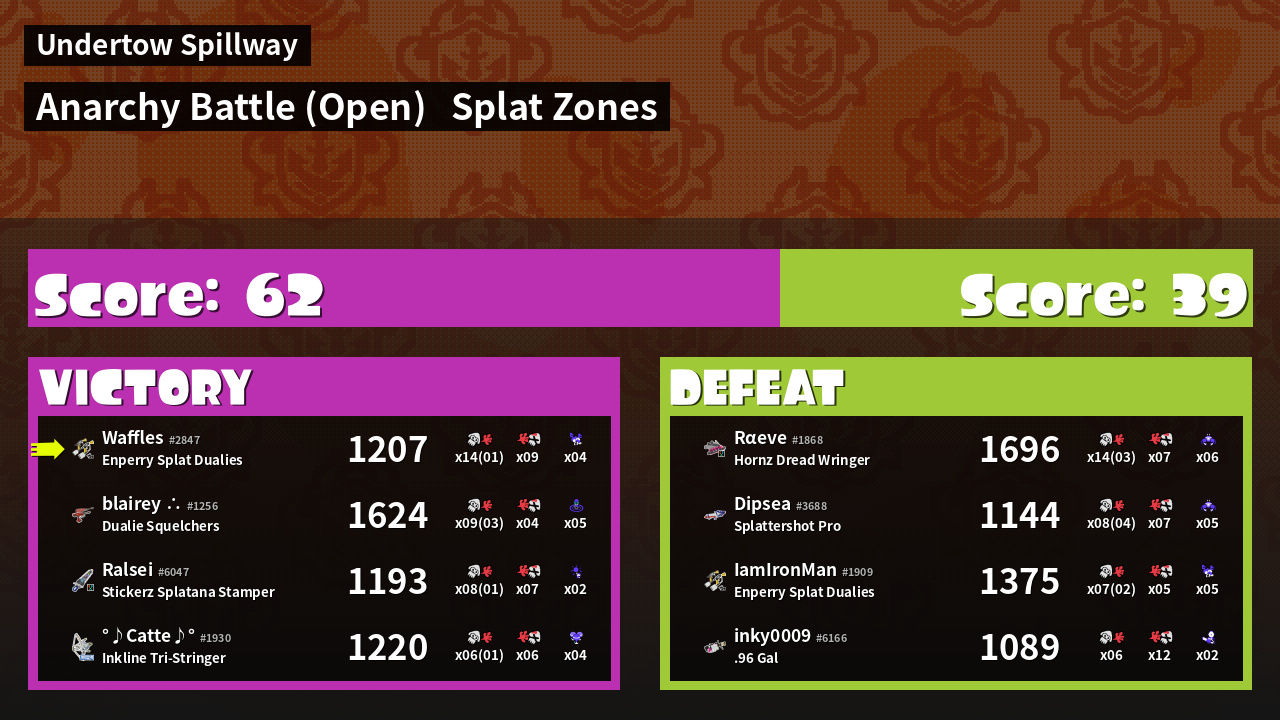 | Mode | Splat Zones - Anarchy Battle (Open) | ||