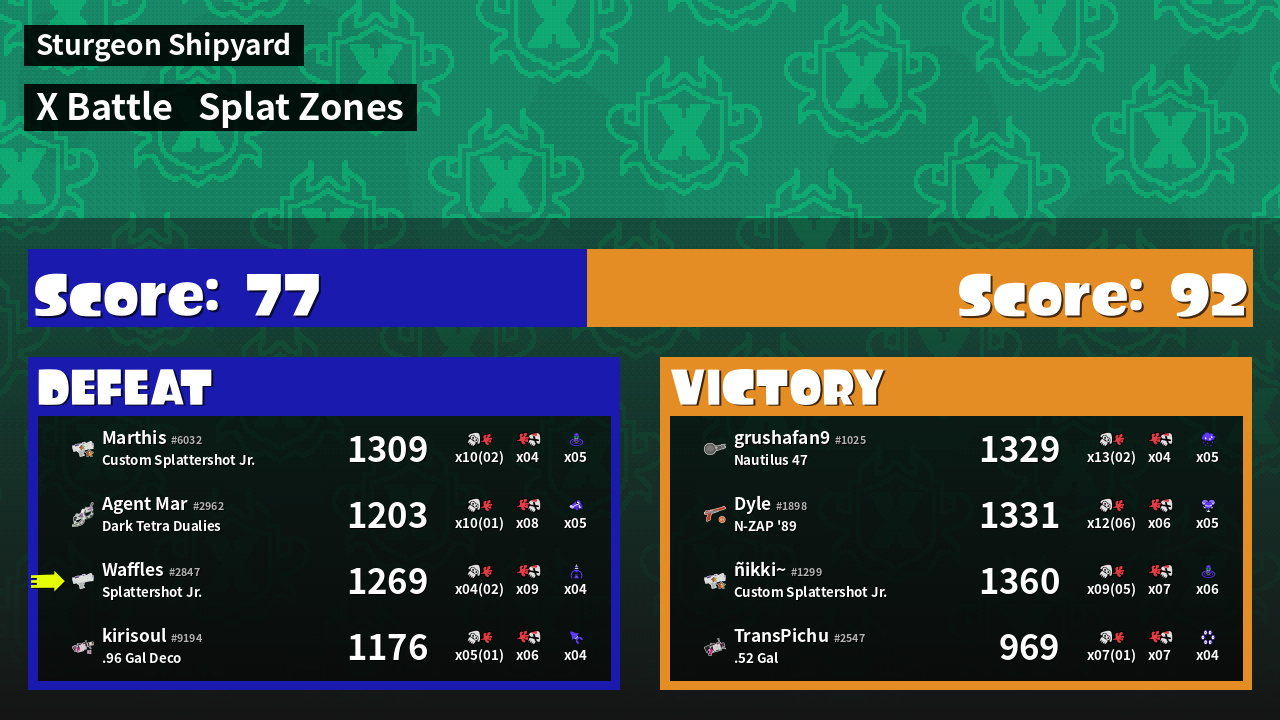 | Medals | #1 Splat Zone Inker #1 Splat Assister #1 Ink Consumer | ||