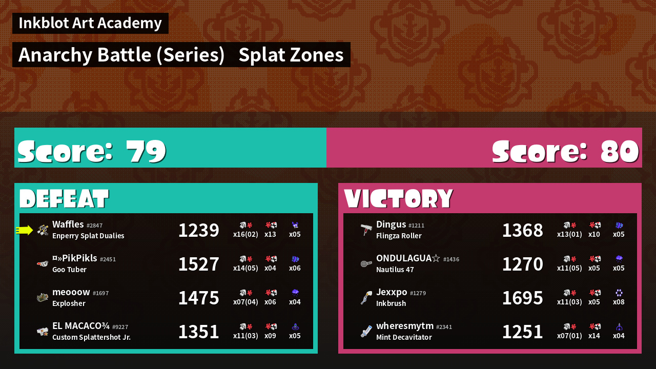 | Weapon | Enperry Splat Dualies ( Curling Bomb / Triple Splashdown) | ||