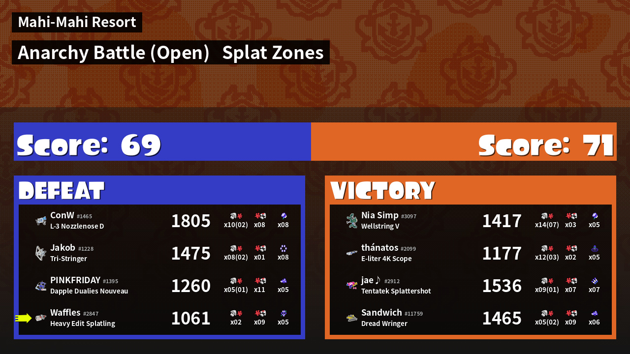 | Mode | Splat Zones - Anarchy Battle (Open) | ||