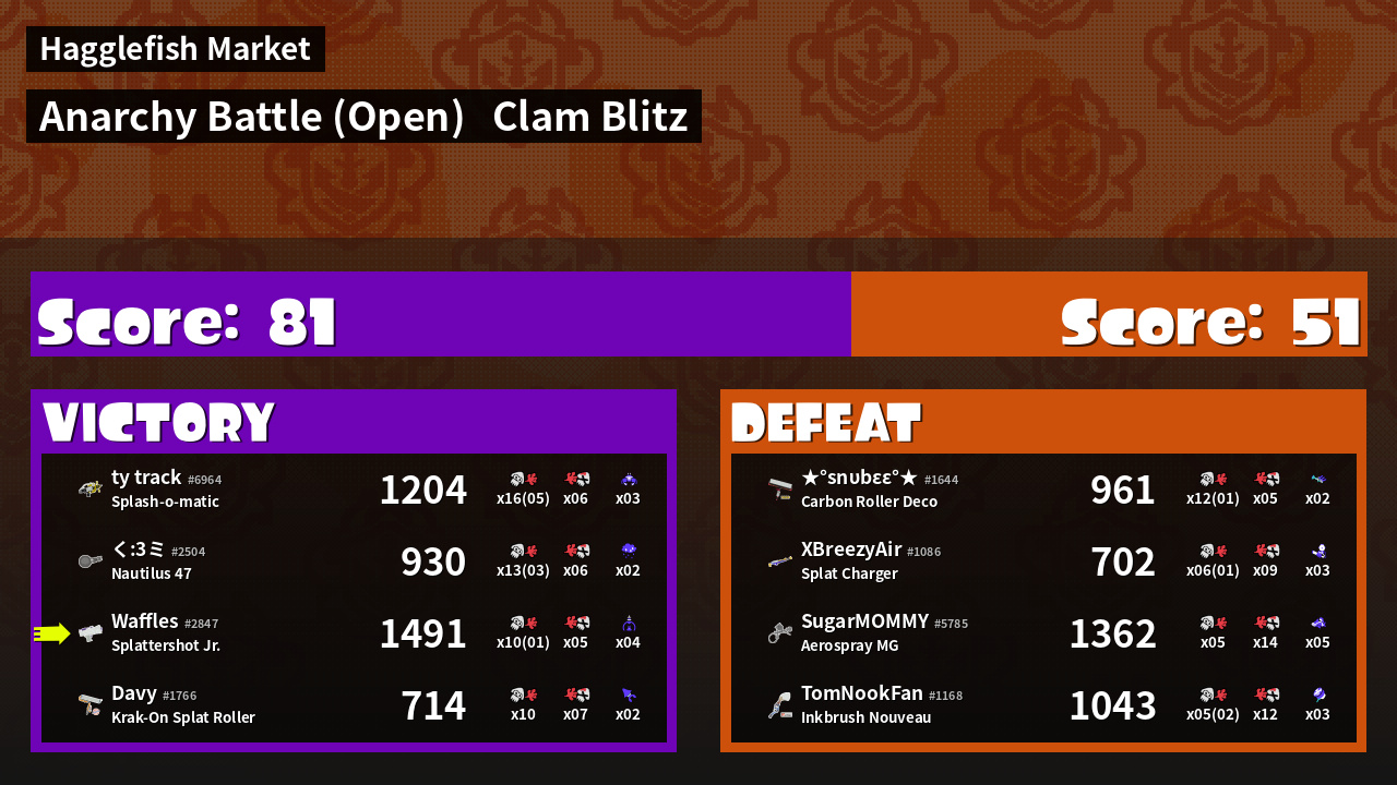 | Mode | Clam Blitz - Anarchy Battle (Open) | ||