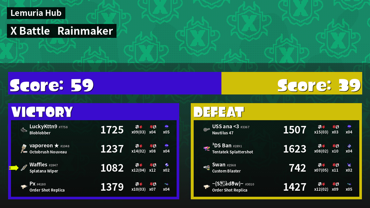 | Medals | #1 Popular Target #1 Splat Assister #1 Checkpoint Breaker | ||