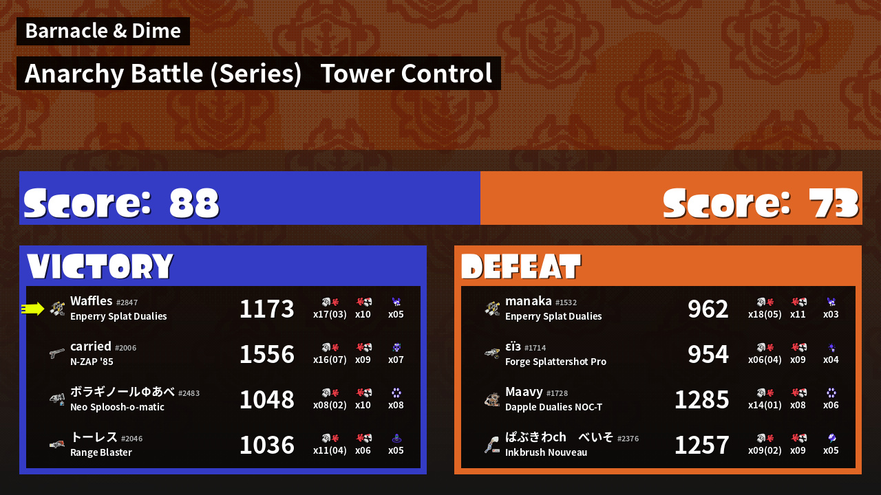 | Mode | Tower Control - Anarchy Battle (Series) | ||