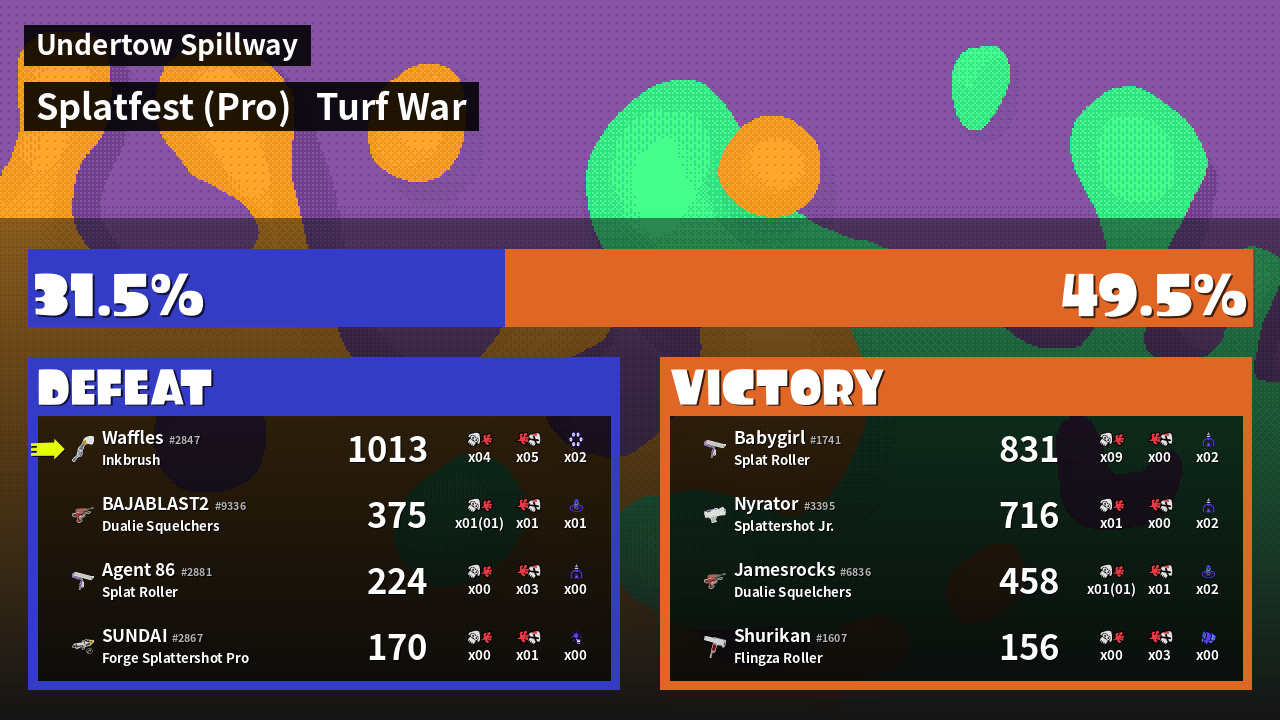 | Medals | #1 Overall Splatter #1 Turf Inker #1 Home-Base Inker | ||