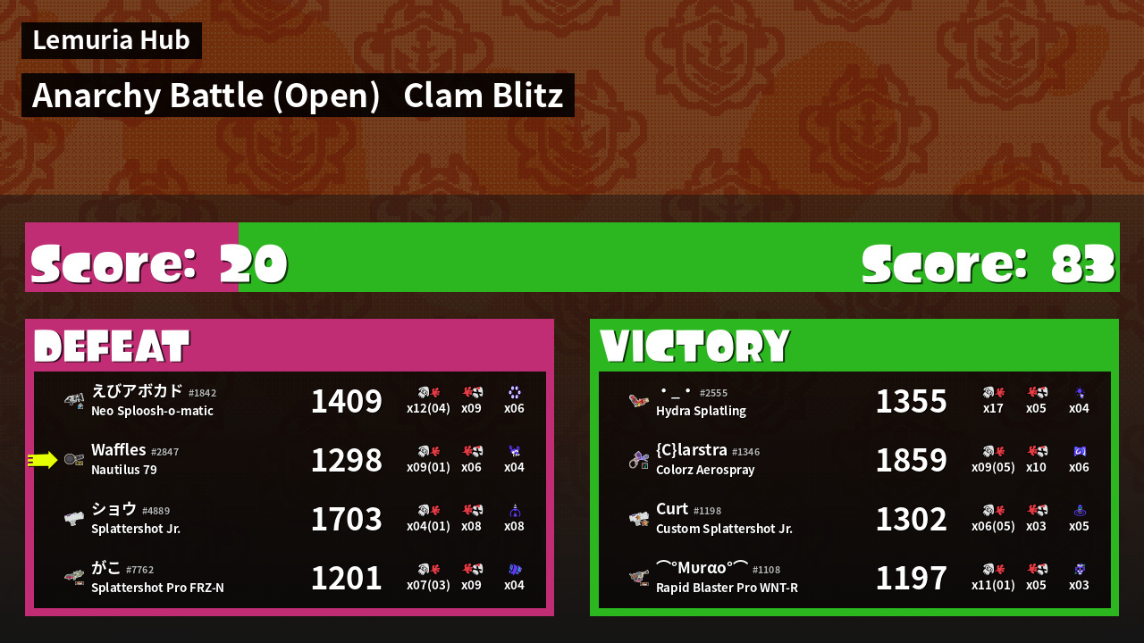 | Mode | Clam Blitz - Anarchy Battle (Open) | ||