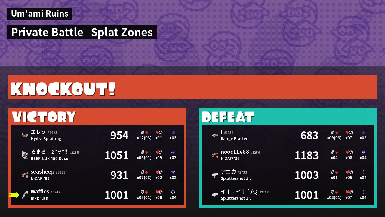 | Medals | #1 Ground Traveler #1 Killer Wail 5.1 User #2 Overall Splatter | ||