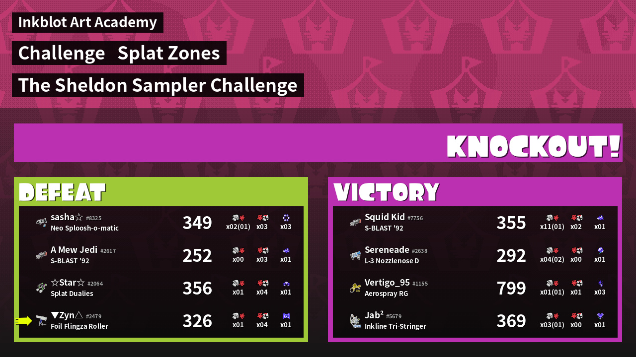| Medals | #1 Enemy Splatter #1 Splat Zone Hero #1 Splattercolor Screen User | ||
