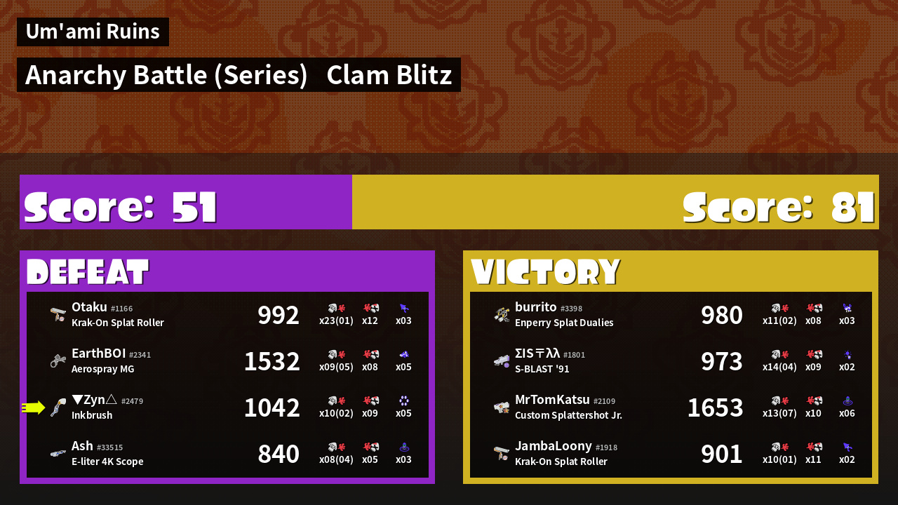 | Mode | Clam Blitz - Anarchy Battle (Series) | ||