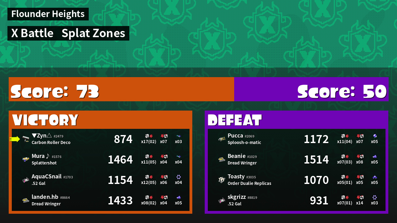 | Mode | Splat Zones - X Battle | ||