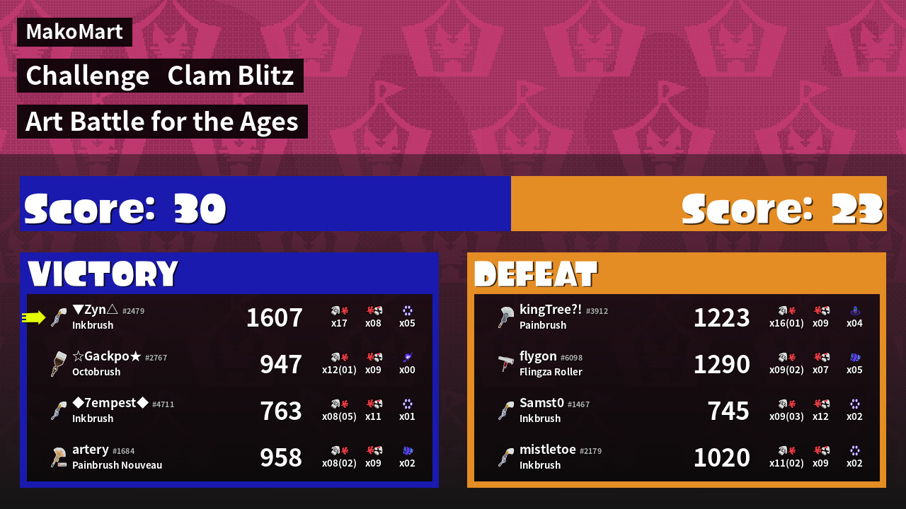| Medals | #1 Overall Splatter #1 Score Booster #1 Turf Inker | ||