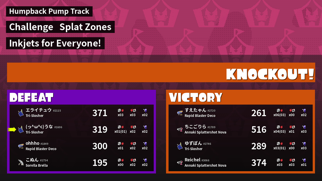 | Medals | #1 Splat Assister #1 Ground Traveler #2 Overall Splatter | ||
