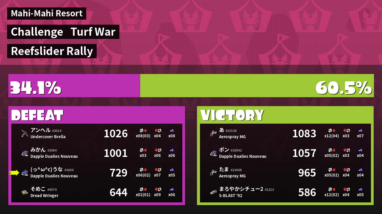 | Mode | Turf War - Challenge | ||