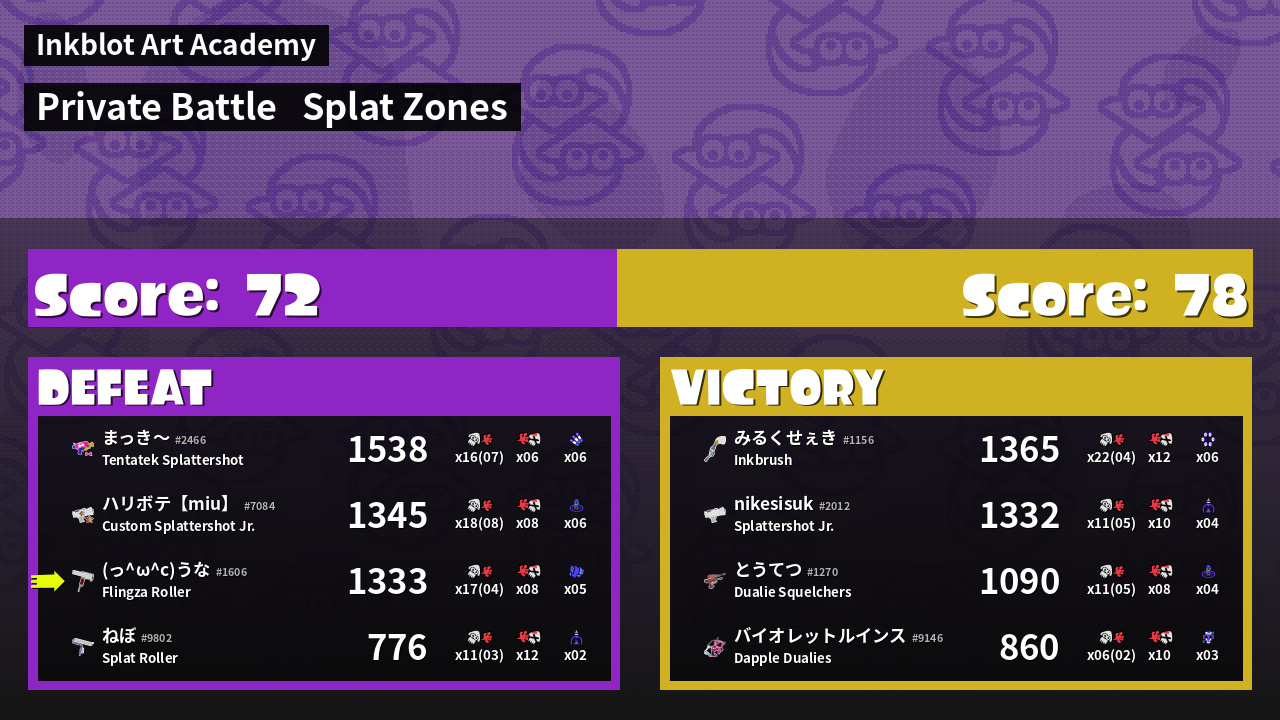 | Medals | #1 Enemy Splatter #1 Tenta Missiles User #2 Overall Splatter | ||