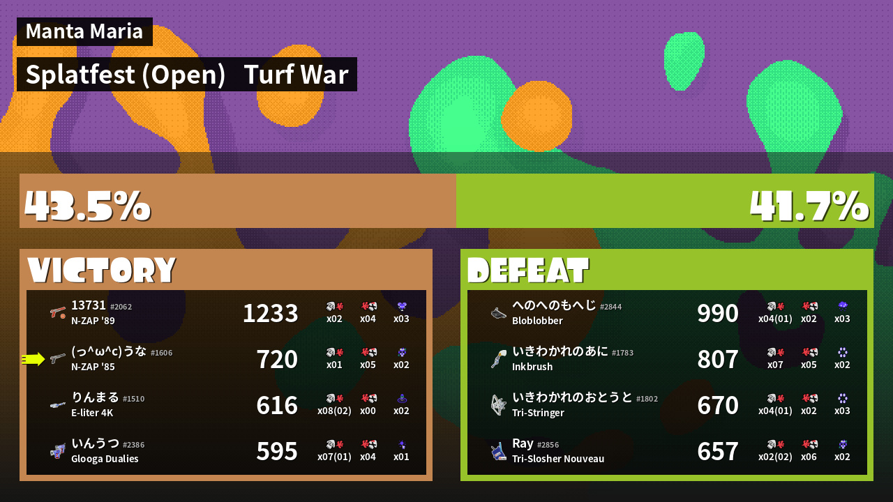 | Mode | Turf War - Splatfest (Open) | ||