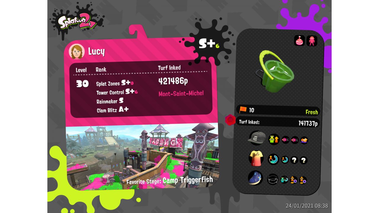 | Weapon | Tri-Slosher ( Burst Bomb, Ink Armor) | ||||||||||||||||||||||||||||||||||||||||