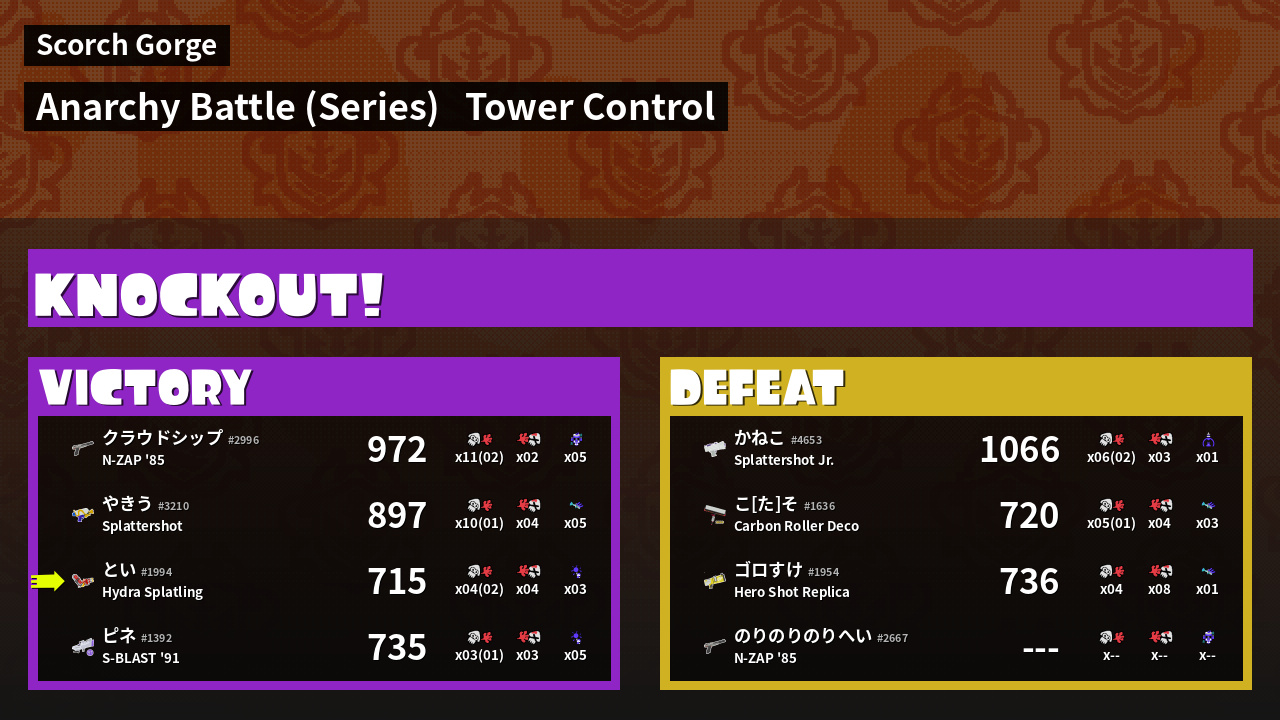 | Mode | Tower Control - Anarchy Battle (Series) | ||