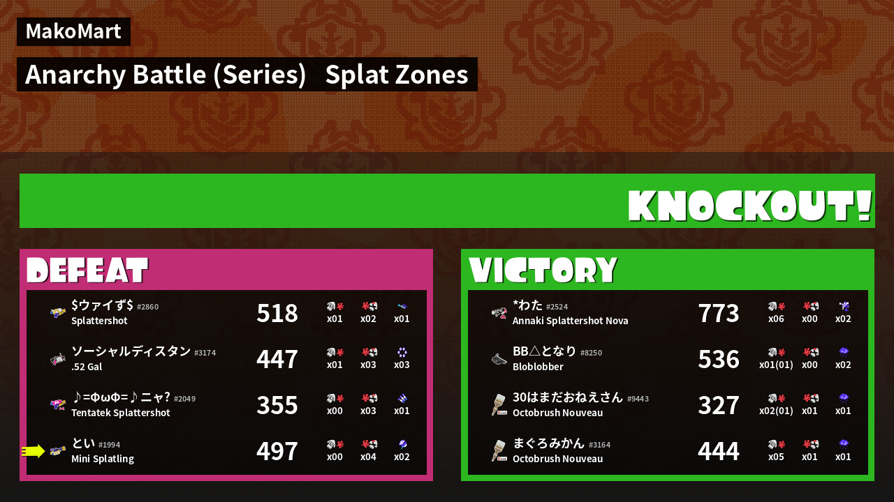 | Mode | Splat Zones - Anarchy Battle (Series) | ||