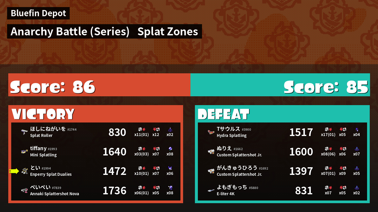 | Mode | Splat Zones - Anarchy Battle (Series) | ||