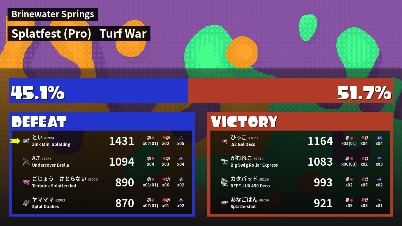 | Medals | #1 Overall Splatter #1 Turf Inker #1 Popular Target | ||