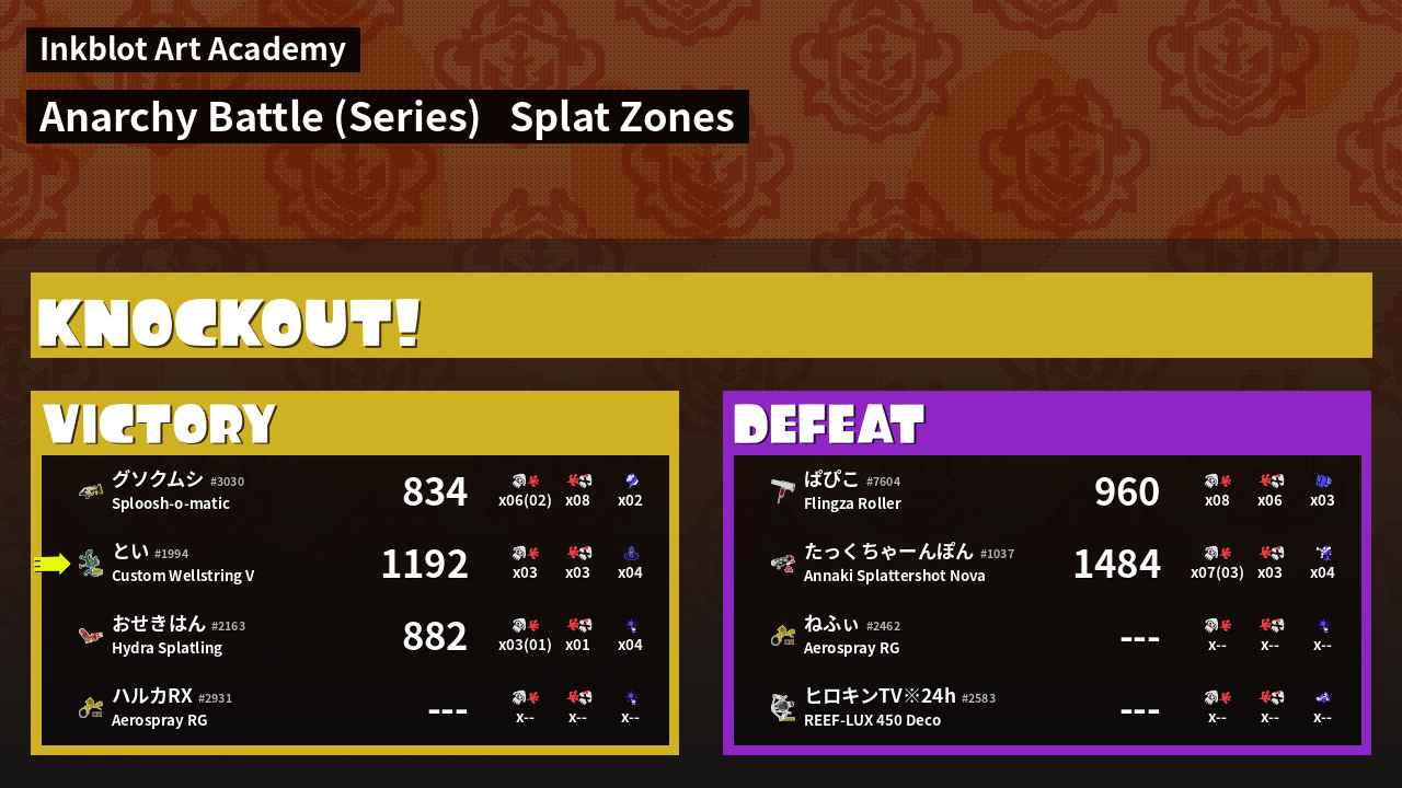 | Mode | Splat Zones - Anarchy Battle (Series) | ||