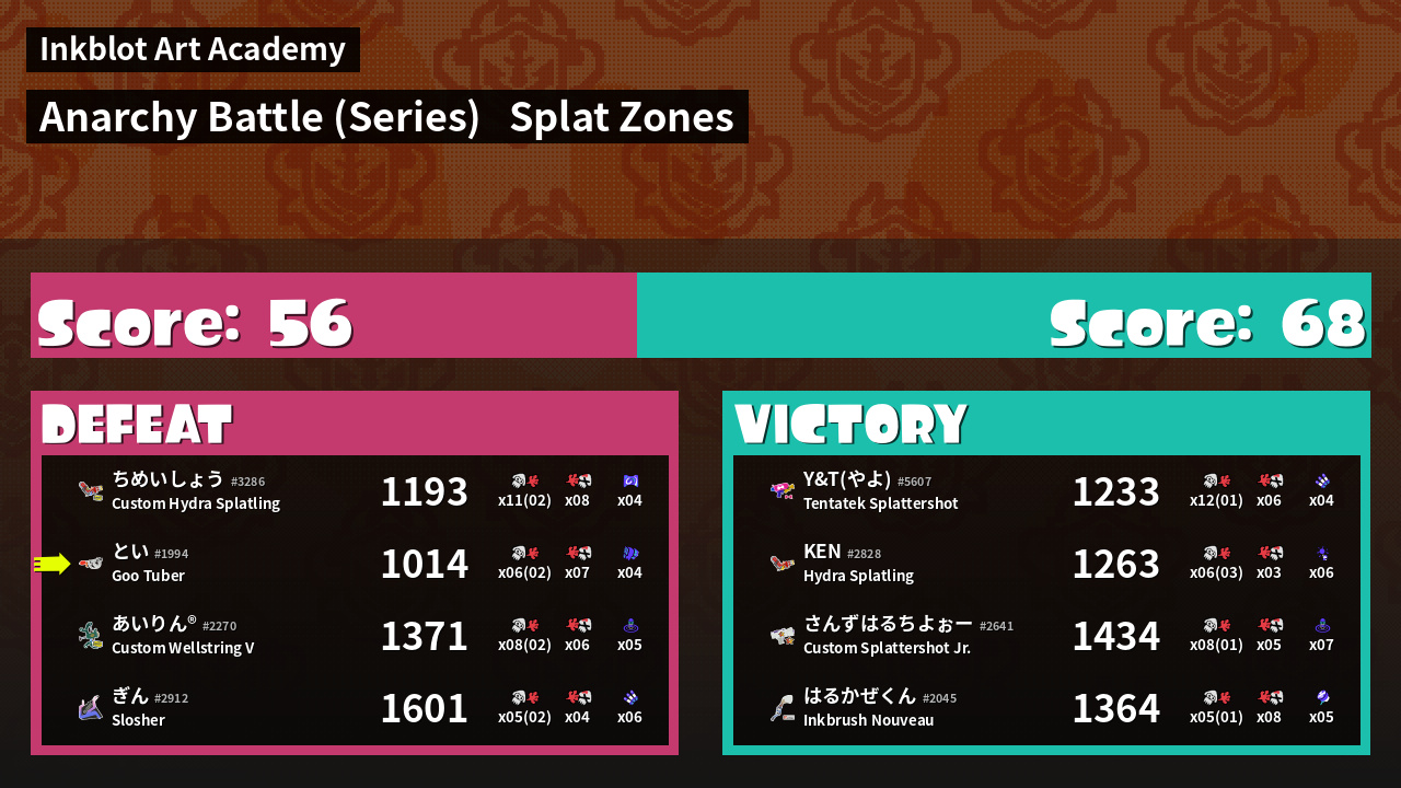 | Mode | Splat Zones - Anarchy Battle (Series) | ||