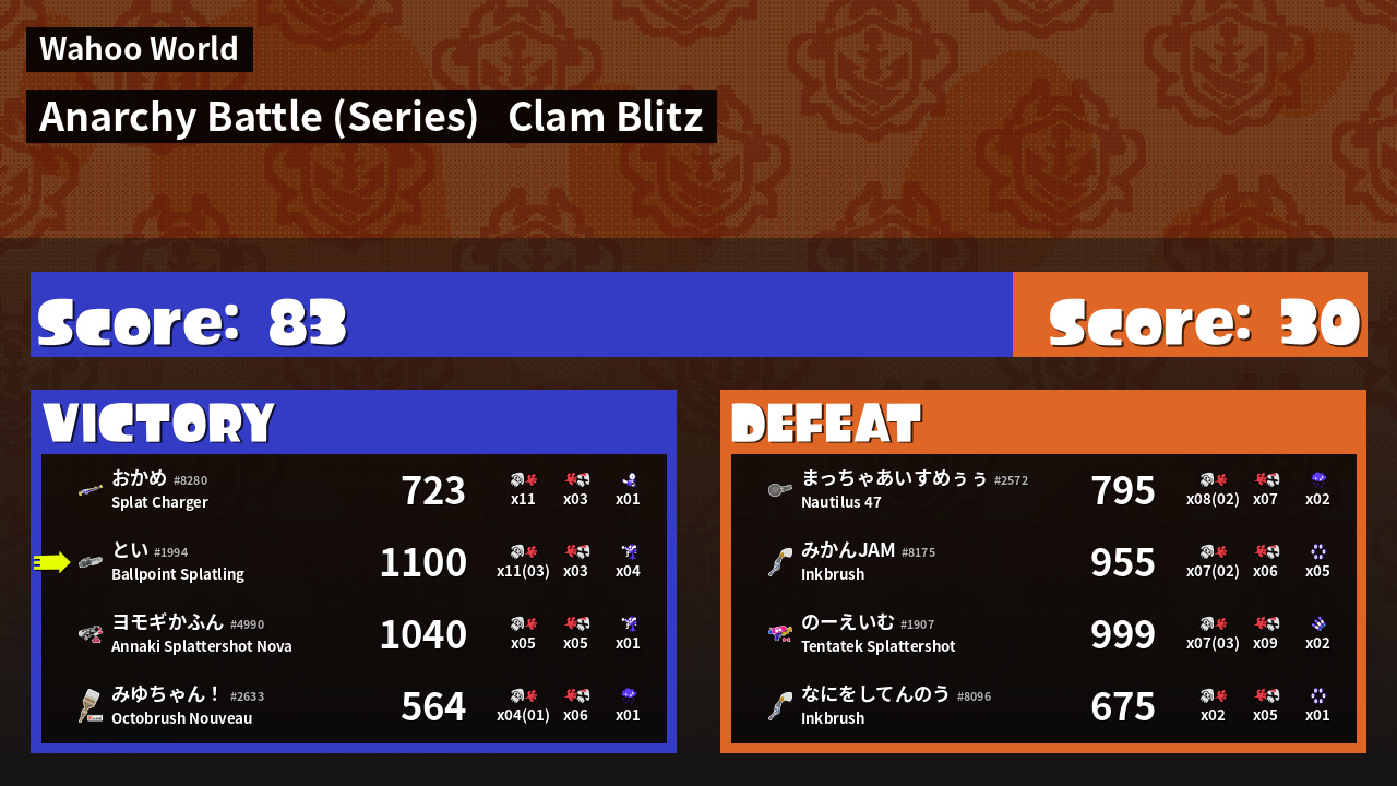 | Mode | Clam Blitz - Anarchy Battle (Series) | ||