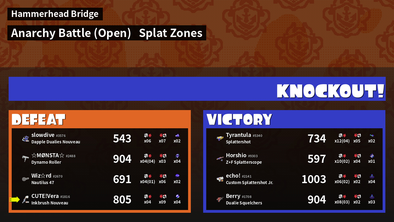 | Mode | Splat Zones - Anarchy Battle (Open) | ||