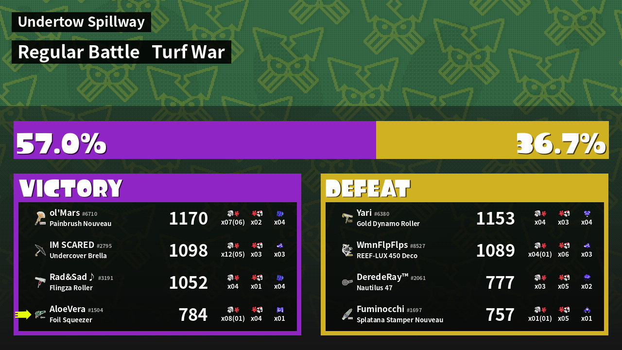 | Medals | #1 Enemy Splatter First Splat! #2 Overall Splatter | ||