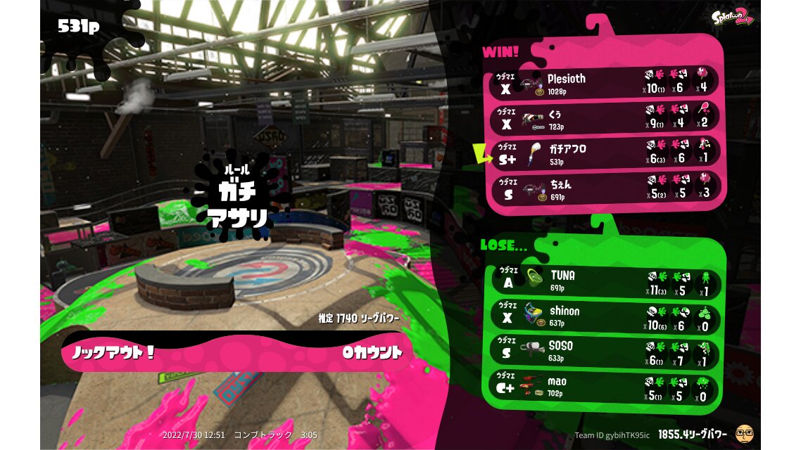 | Name | Weapon | Level | Rank | Inked | k+a/sp | k/d |