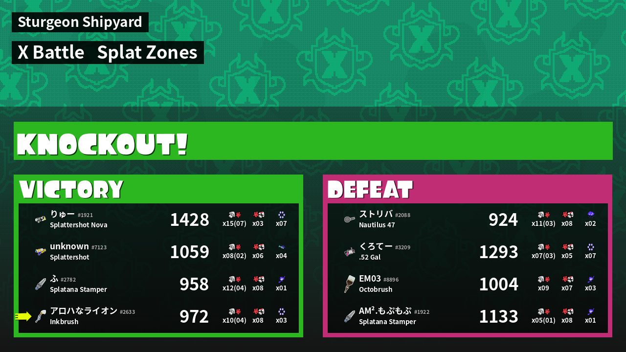 | Mode | Splat Zones - X Battle | ||