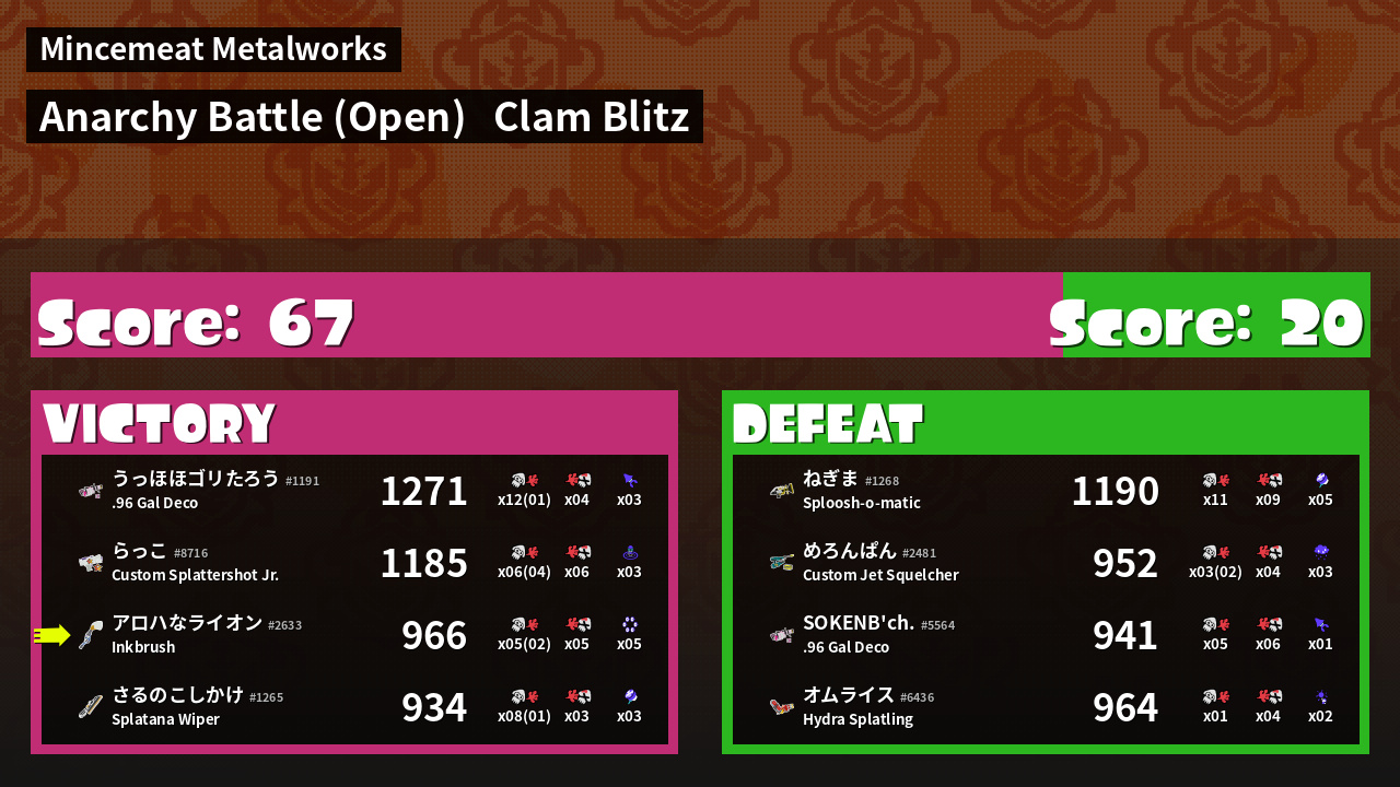 | Mode | Clam Blitz - Anarchy Battle (Open) | ||