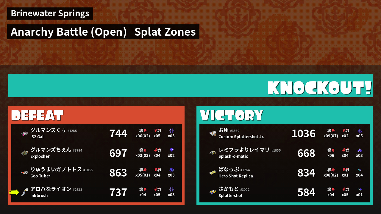 | Mode | Splat Zones - Anarchy Battle (Open) | ||