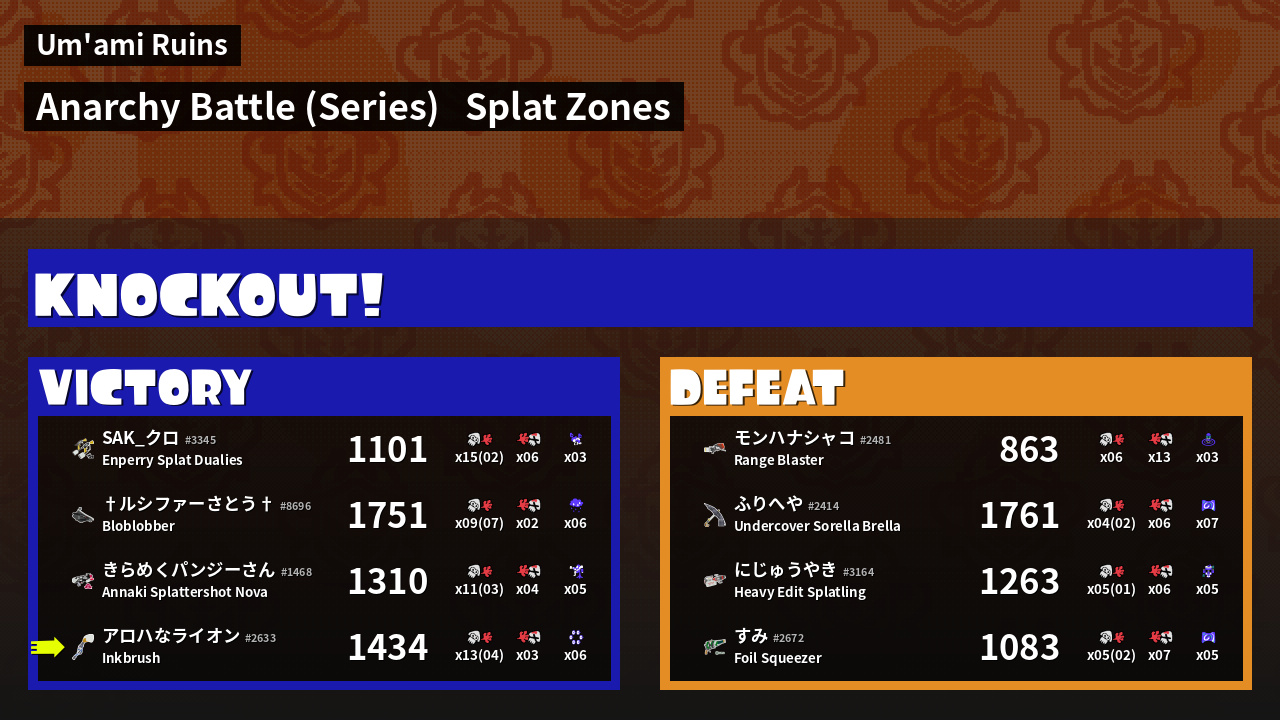 | Mode | Splat Zones - Anarchy Battle (Series) | ||
