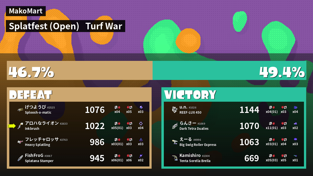 | Medals | #1 Splat Assister #1 Ground Traveler #1 Damage Taker | ||