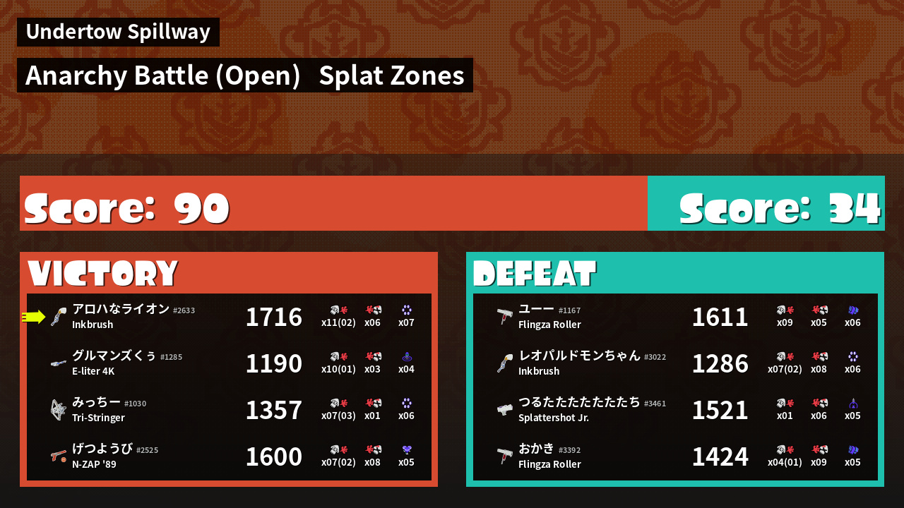 | Mode | Splat Zones - Anarchy Battle (Open) | ||