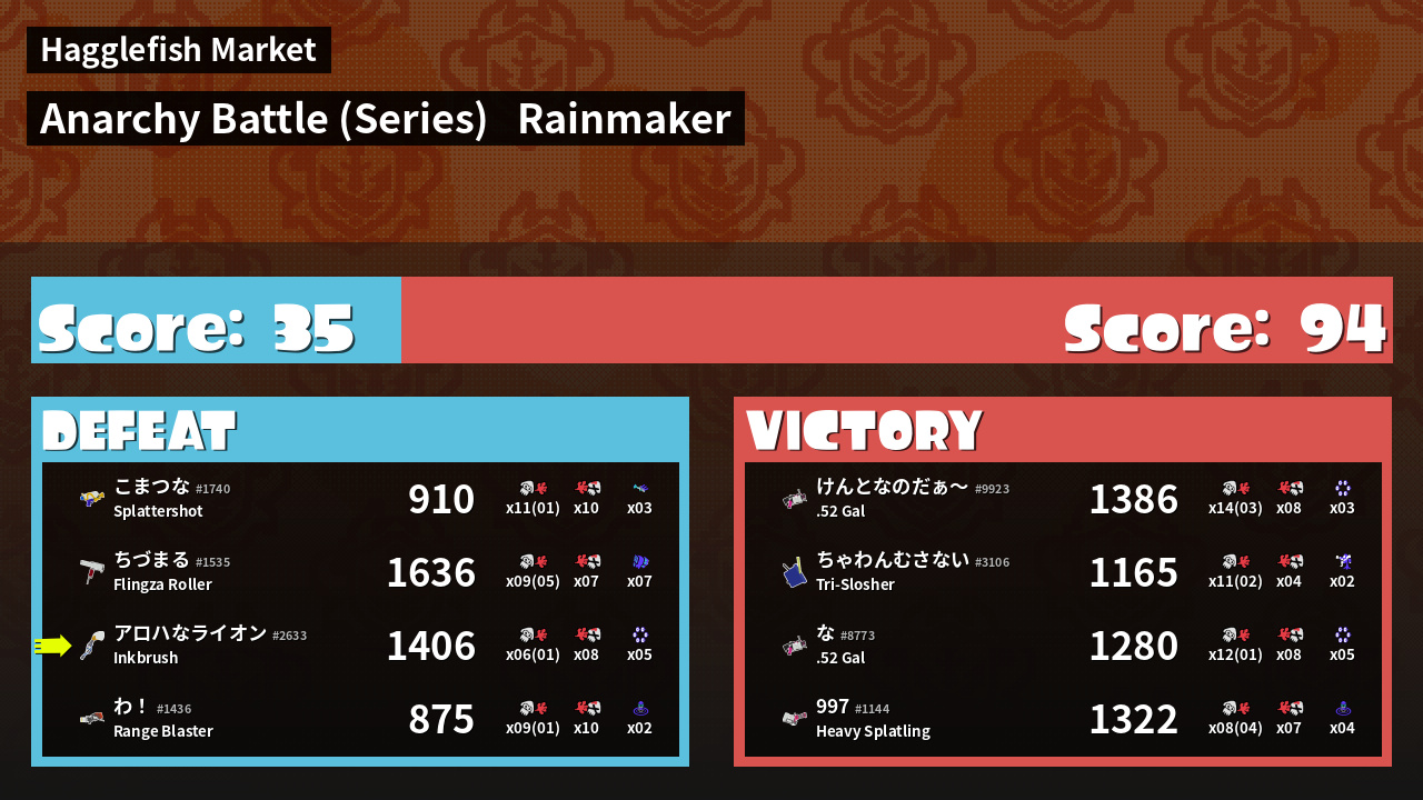 Name | Weapon | Inked | ![]() |