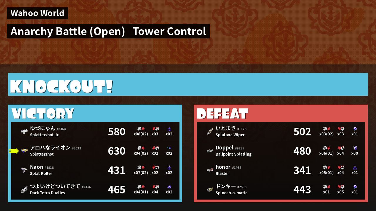 | Mode | Tower Control - Anarchy Battle (Open) | ||