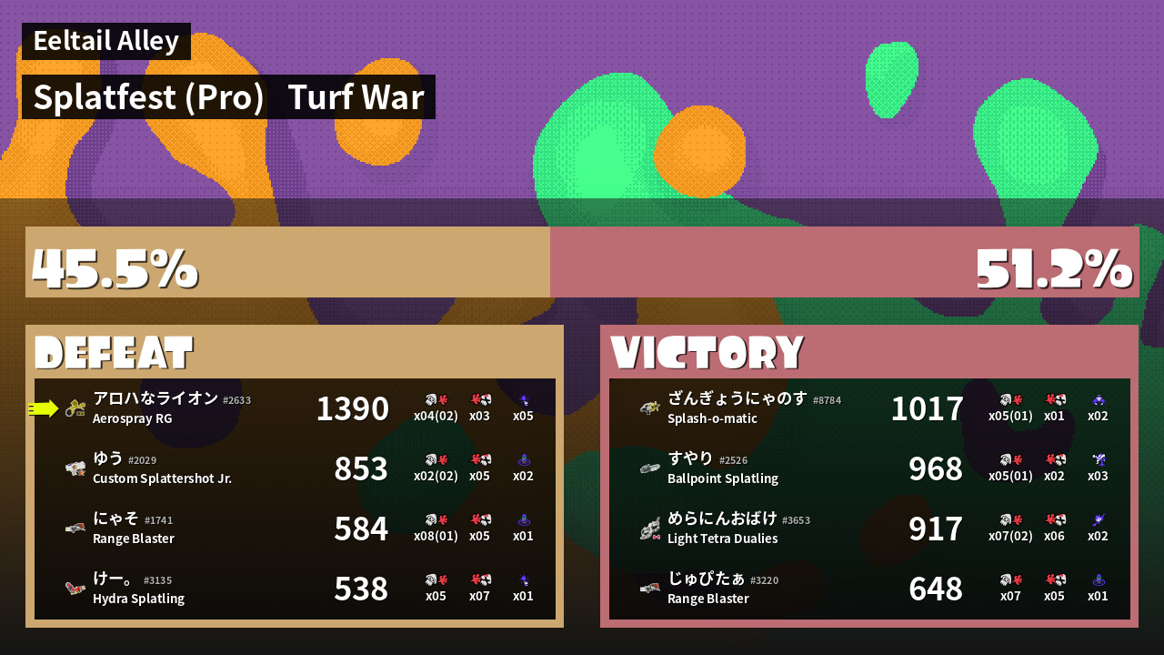 | Medals | #1 Turf Inker #1 Enemy-Base Inker #1 Splat Assister | ||