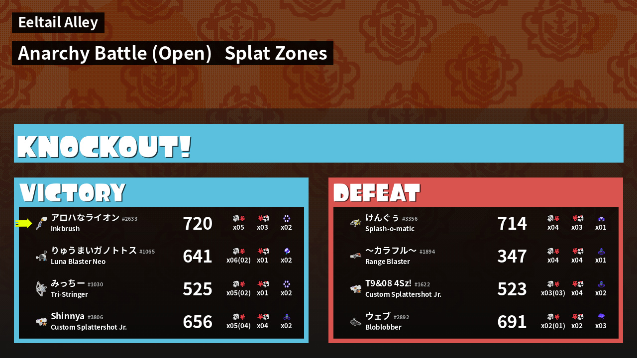 | Mode | Splat Zones - Anarchy Battle (Open) | ||