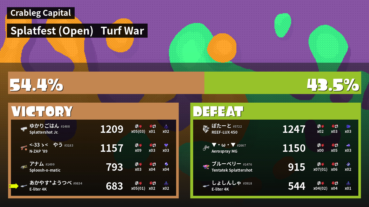 | Medals | #1 Wave Breaker User #2 Overall Splatter #2 Enemy Splatter | ||
