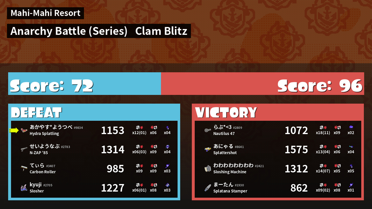 | Mode | Clam Blitz - Anarchy Battle (Series) | ||||