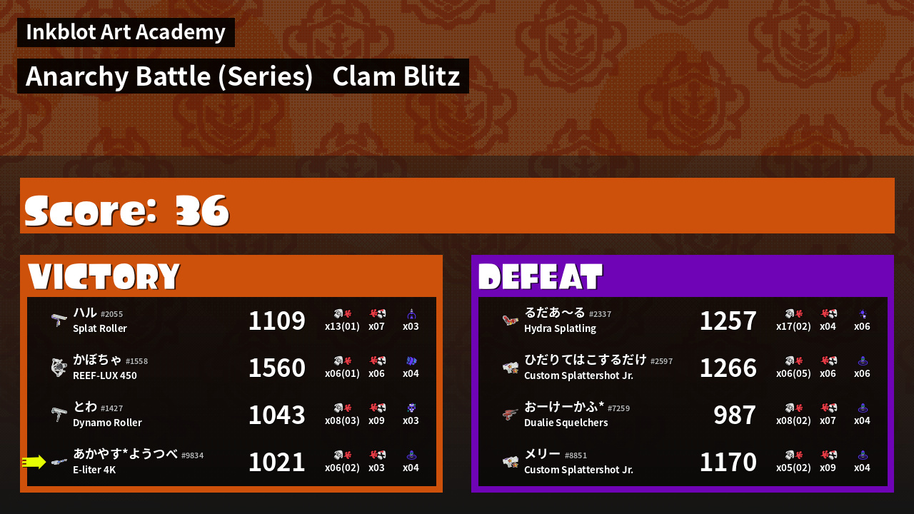 Name | Weapon | Inked | ![]() |