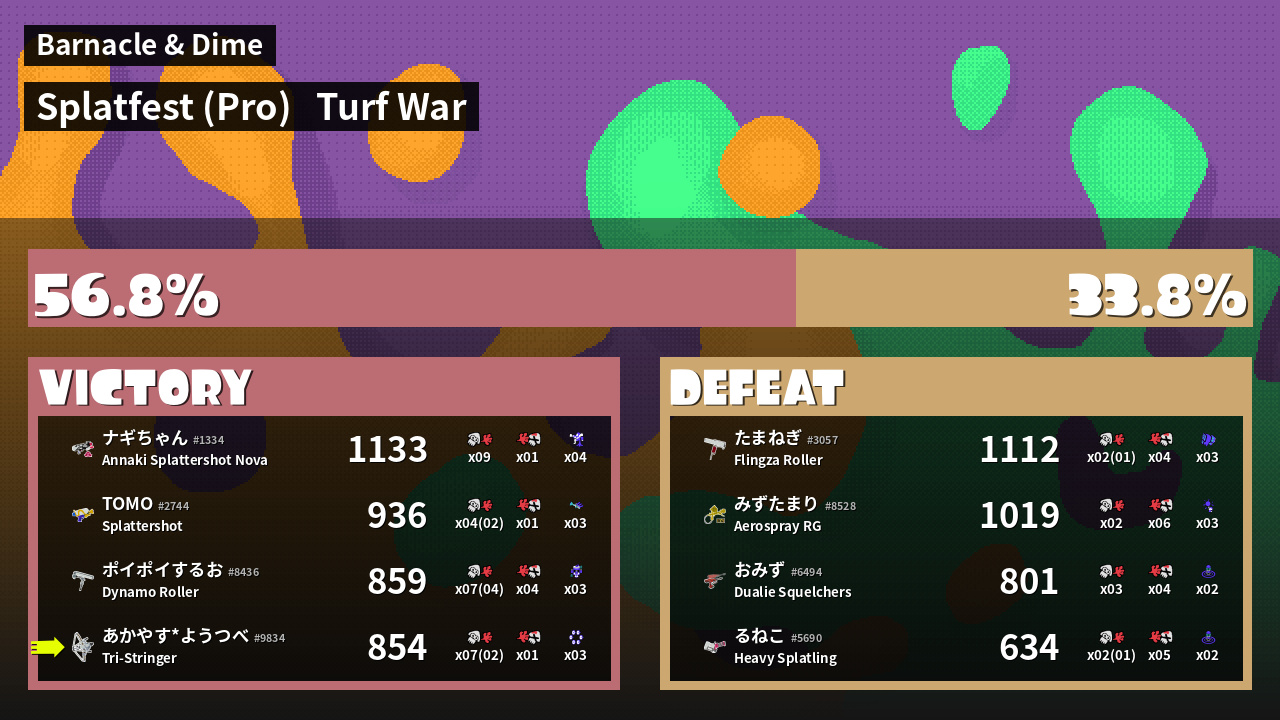 | Mode | Turf War - Splatfest (Pro) | ||