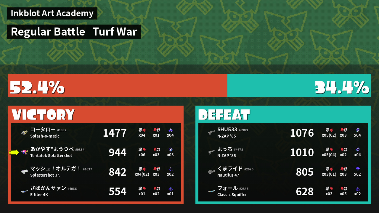 | Mode | Turf War - Regular Battle | ||