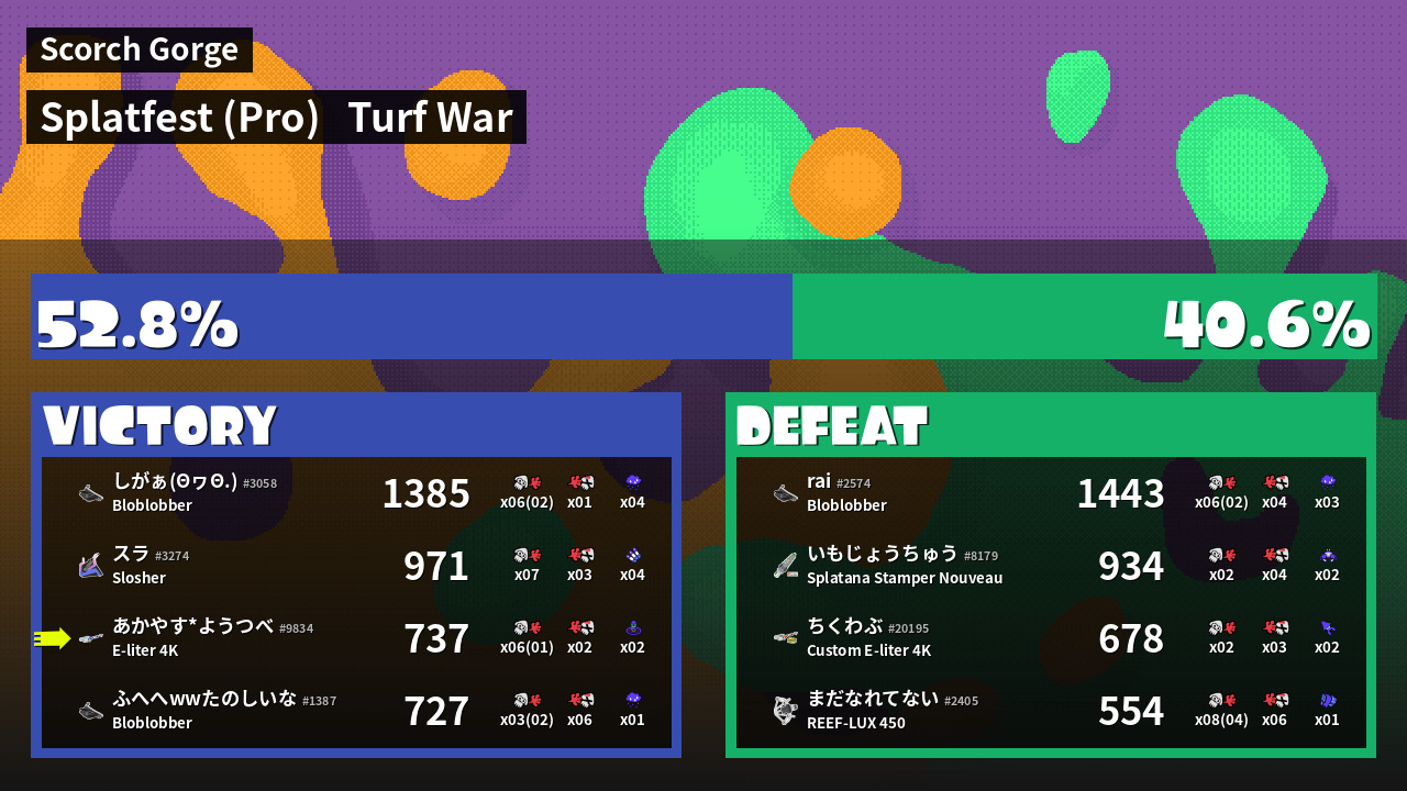| Mode | Turf War - Splatfest (Pro) | ||