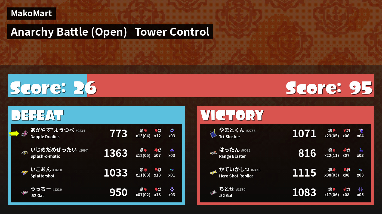 | Mode | Tower Control - Anarchy Battle (Open) | ||