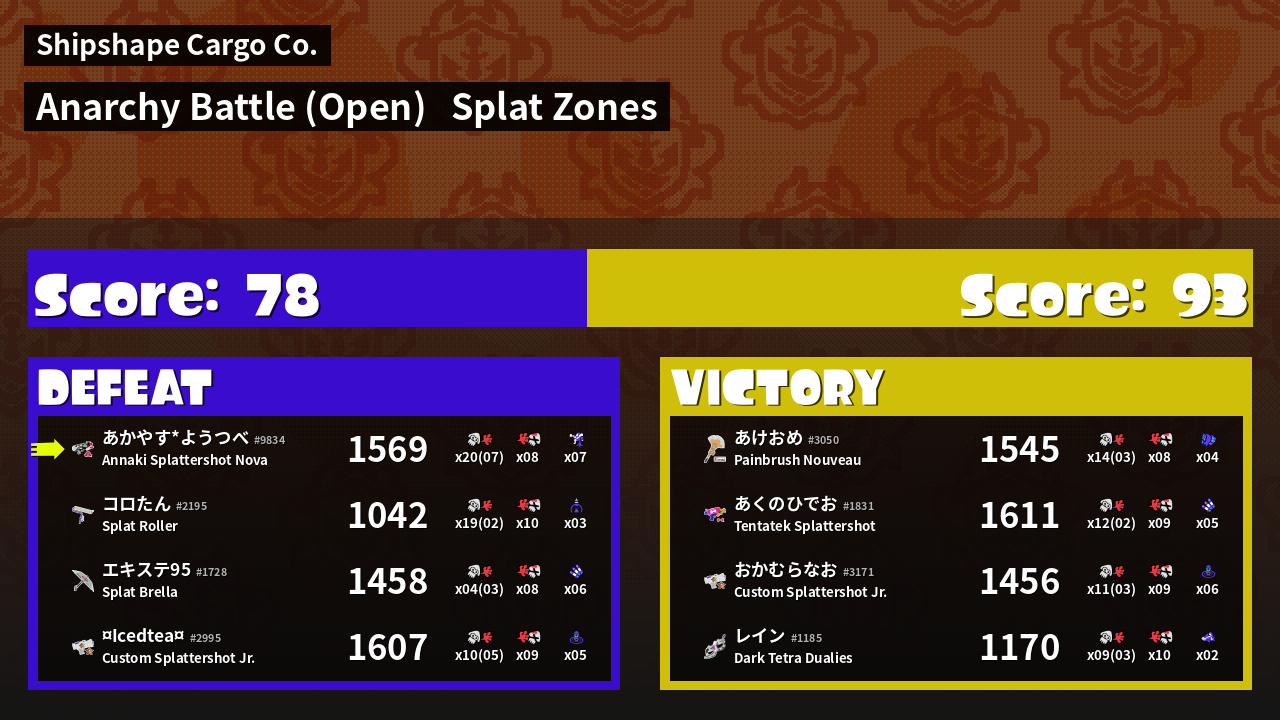 | Mode | Splat Zones - Anarchy Battle (Open) | ||